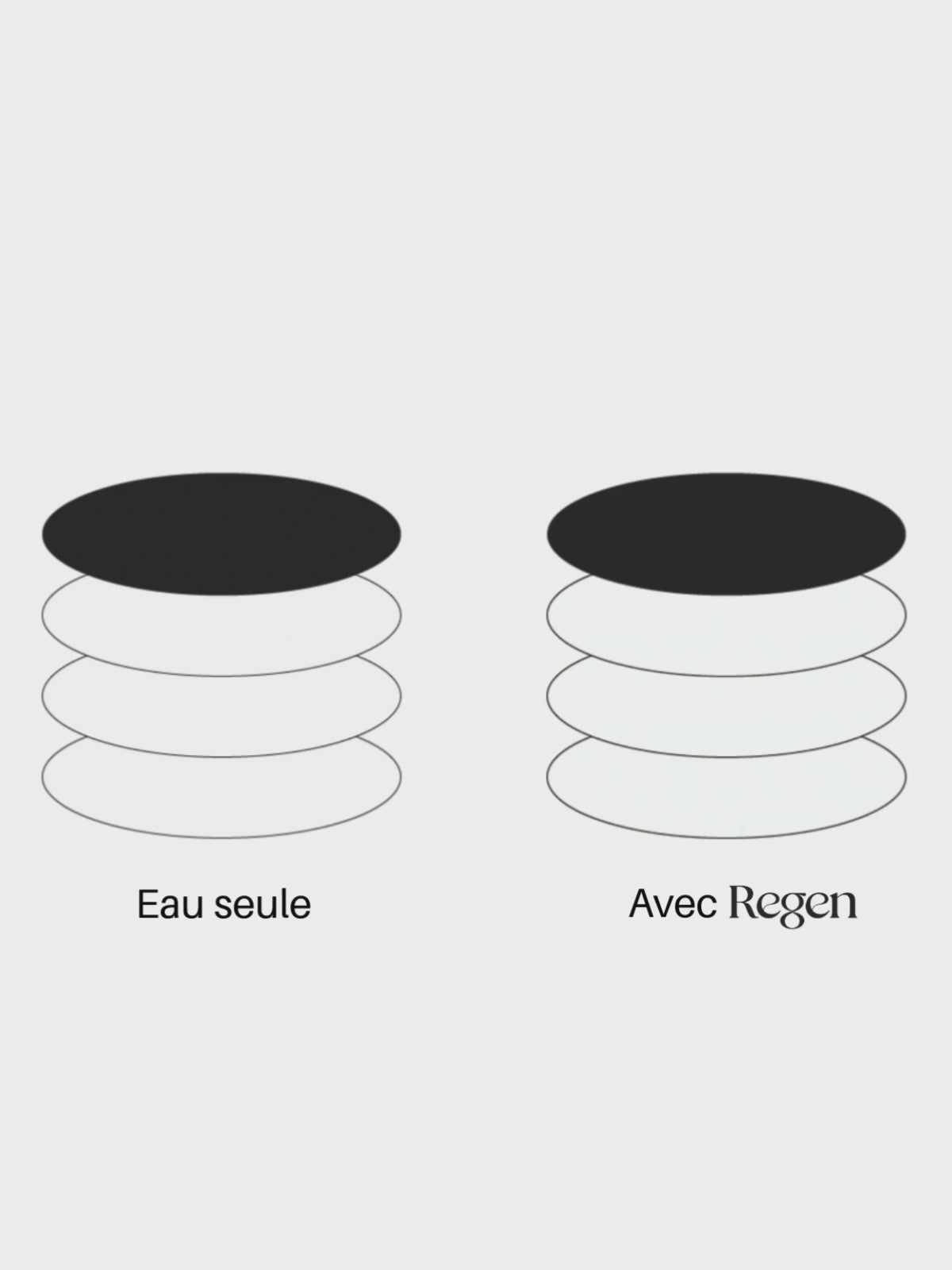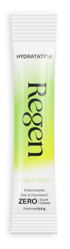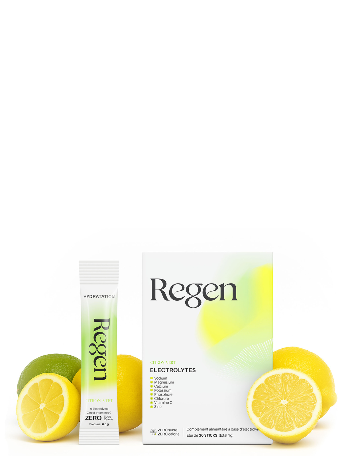 Avec REGEN, l’apport en électrolytes (Sodium, Potassium, Magnésium, Calcium, Zinc, Phosphore) permet une meilleure absorption de l’eau dans les cellules.