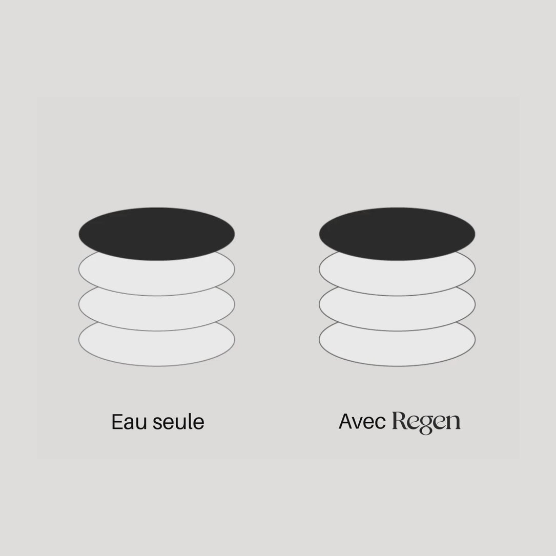 Résultat Mesurable : Avec Regen, votre organisme absorbe l'eau 4 fois plus rapidement qu'avec de l'eau pure, optimisant chaque gorgée pour une hydratation cellulaire maximale.